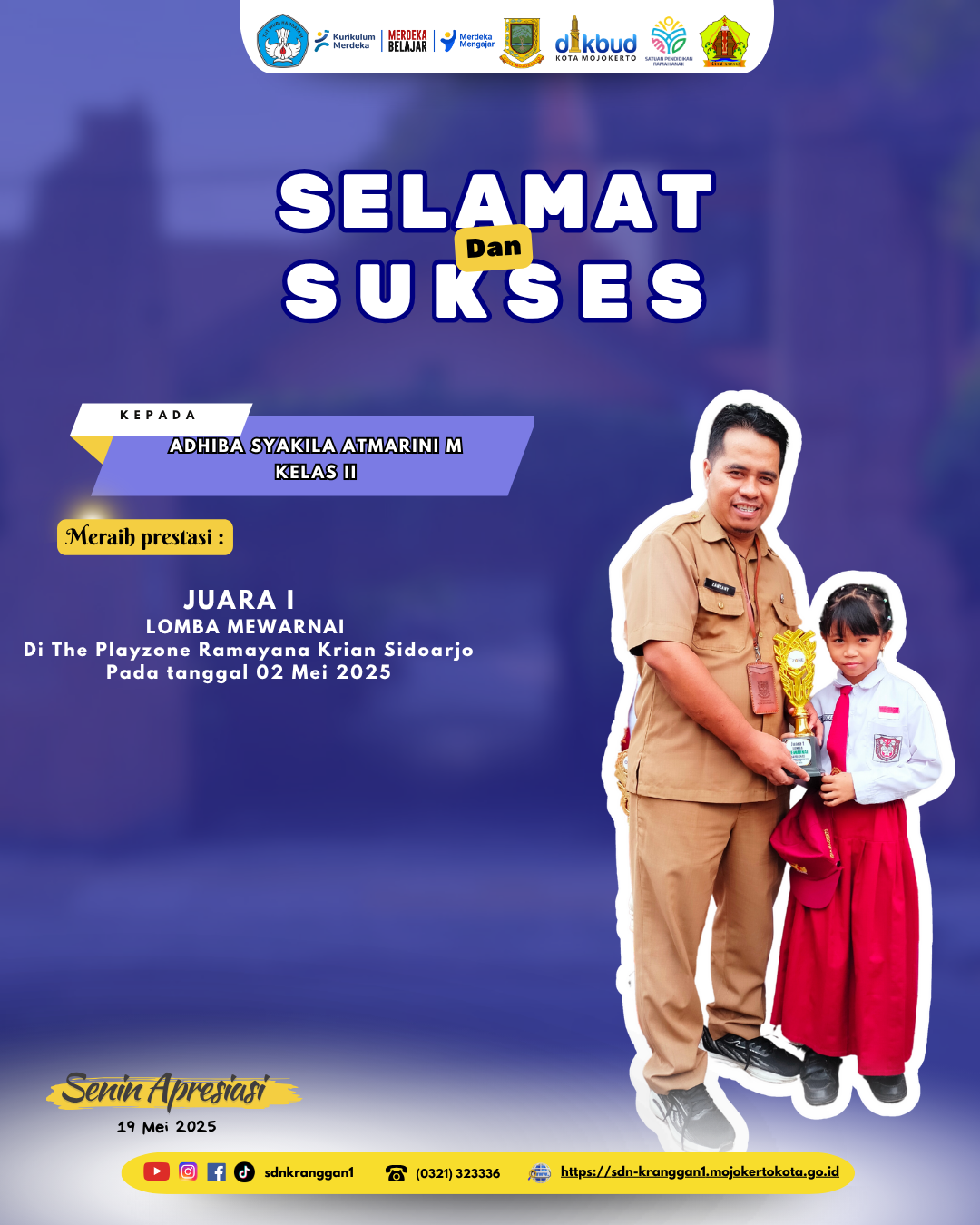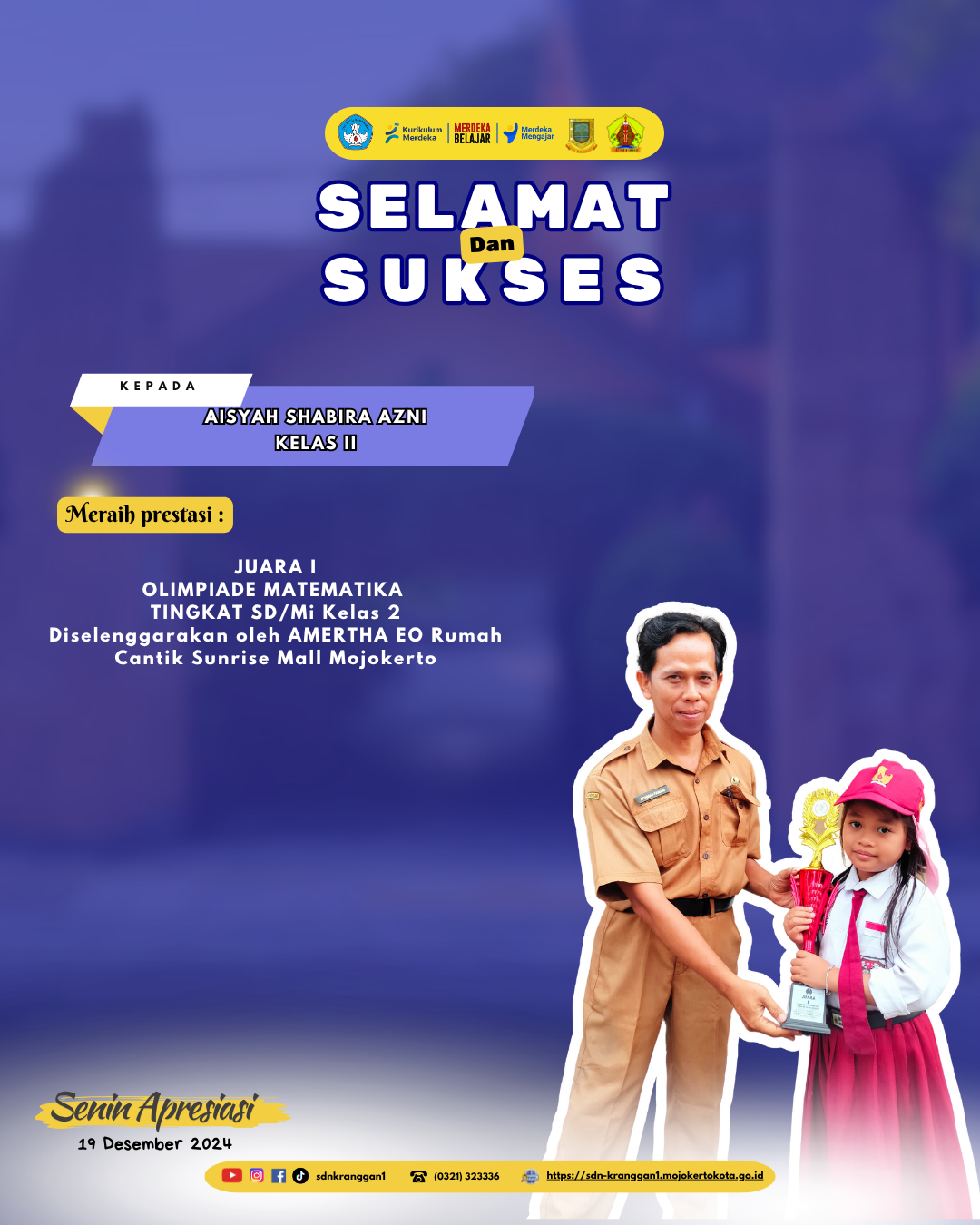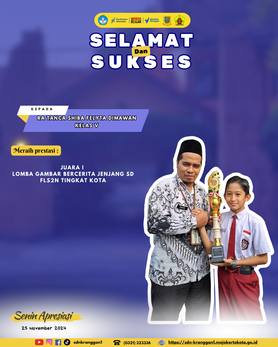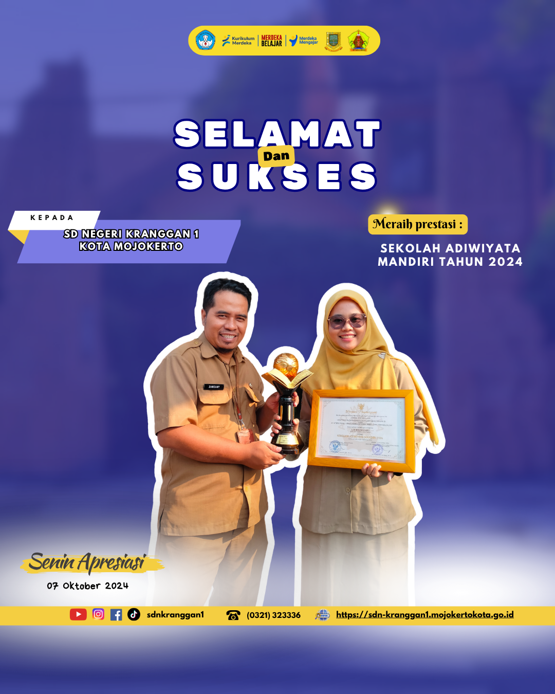 Puji syukur kita panjatkan ke hadirat Allah SWT atas segala rahmat dan karunia-Nya, sehingga SDN Kranggan 1 Kota Mojokerto dapat terus berkembang dan memberikan layanan pendidikan yang unggul dan berkarakter bagi generasi penerus bangsa.