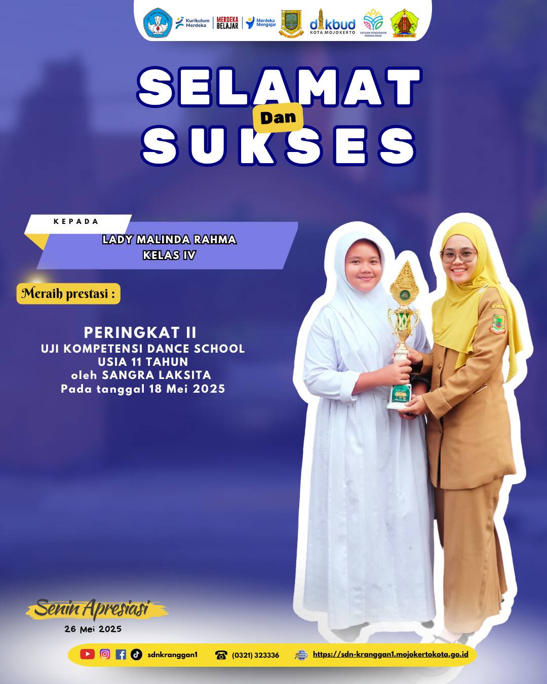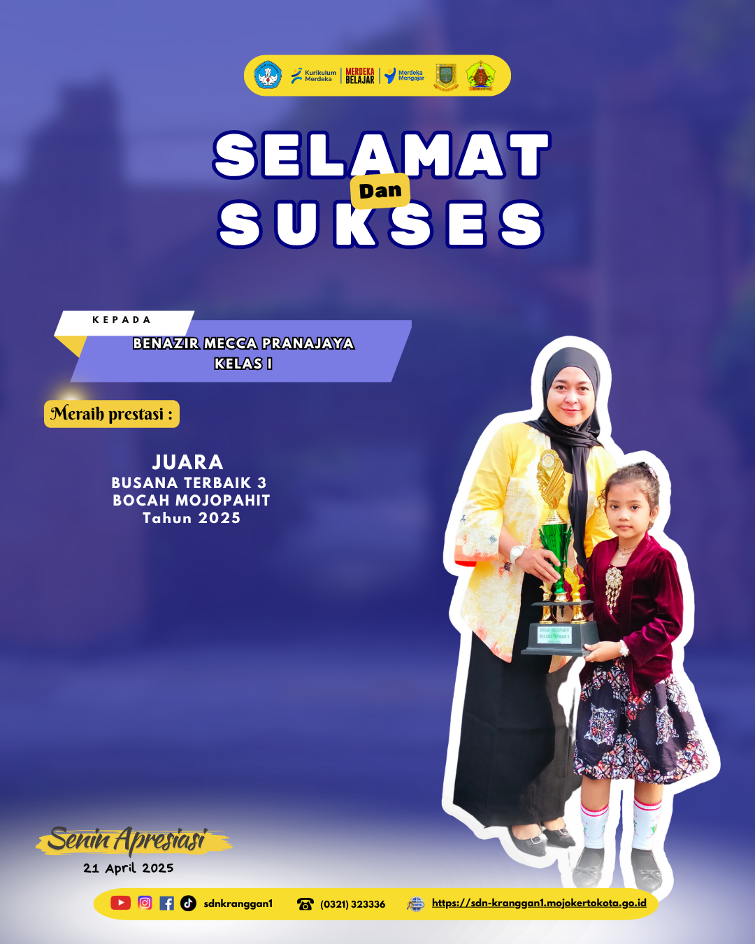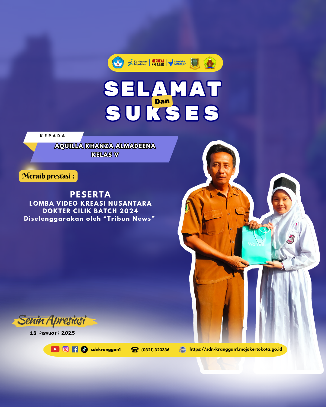 Puji syukur kita panjatkan ke hadirat Allah SWT atas segala rahmat dan karunia-Nya, sehingga SDN Kranggan 1 Kota Mojokerto dapat terus berkembang dan memberikan layanan pendidikan yang unggul dan berkarakter bagi generasi penerus bangsa.