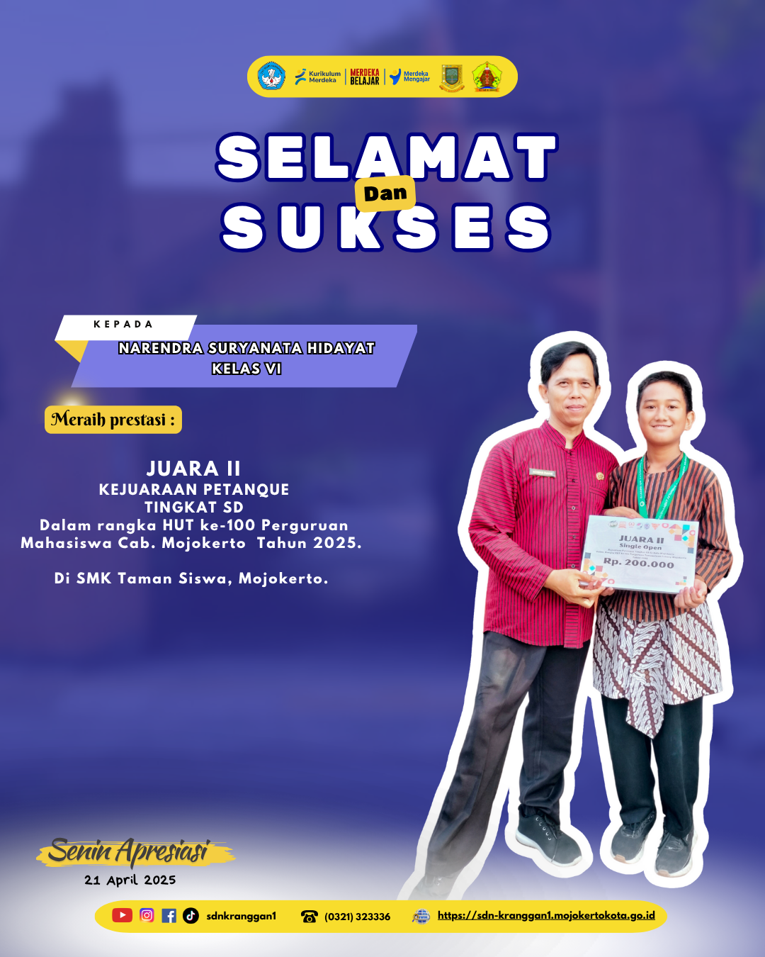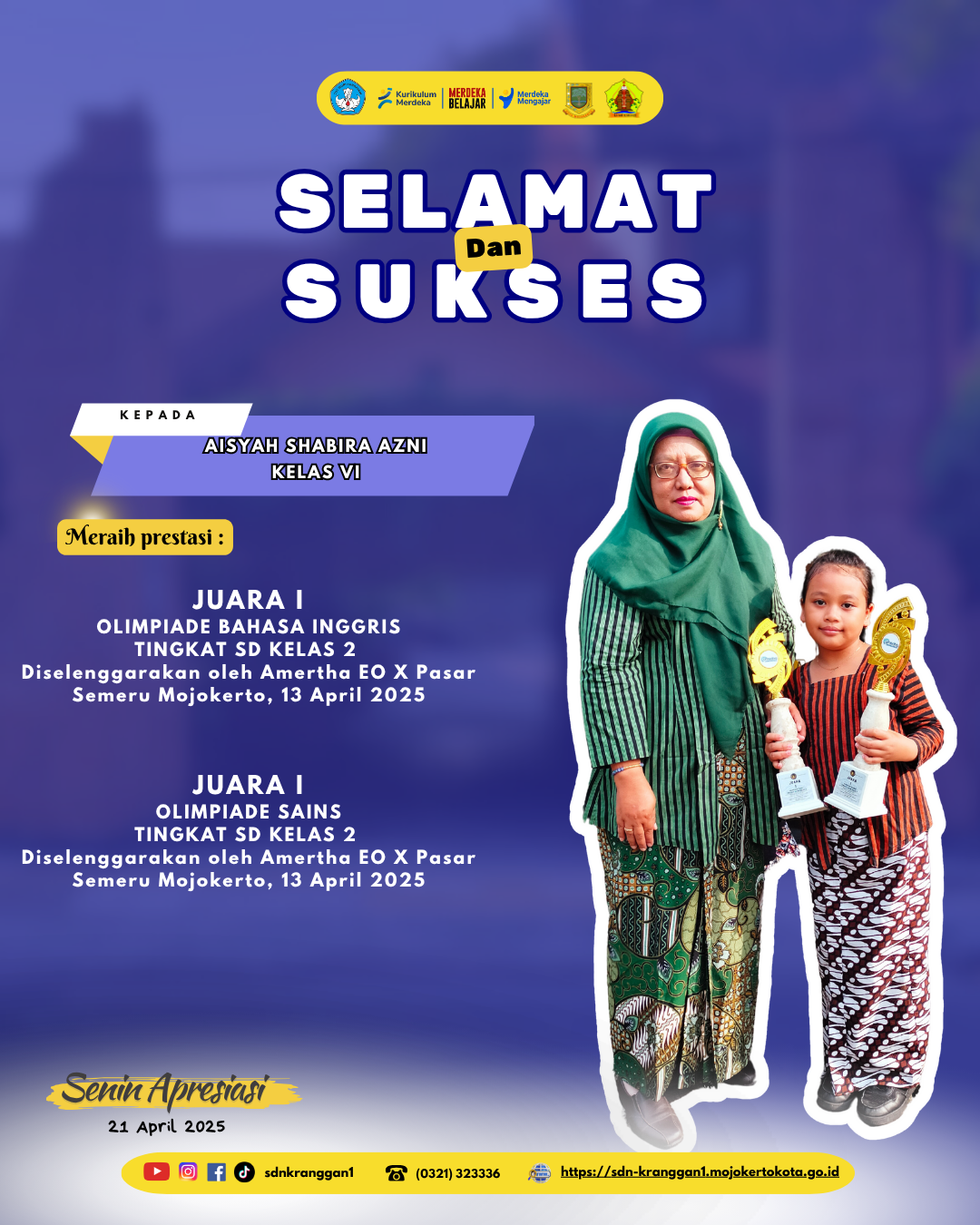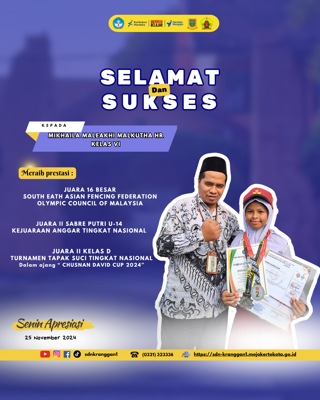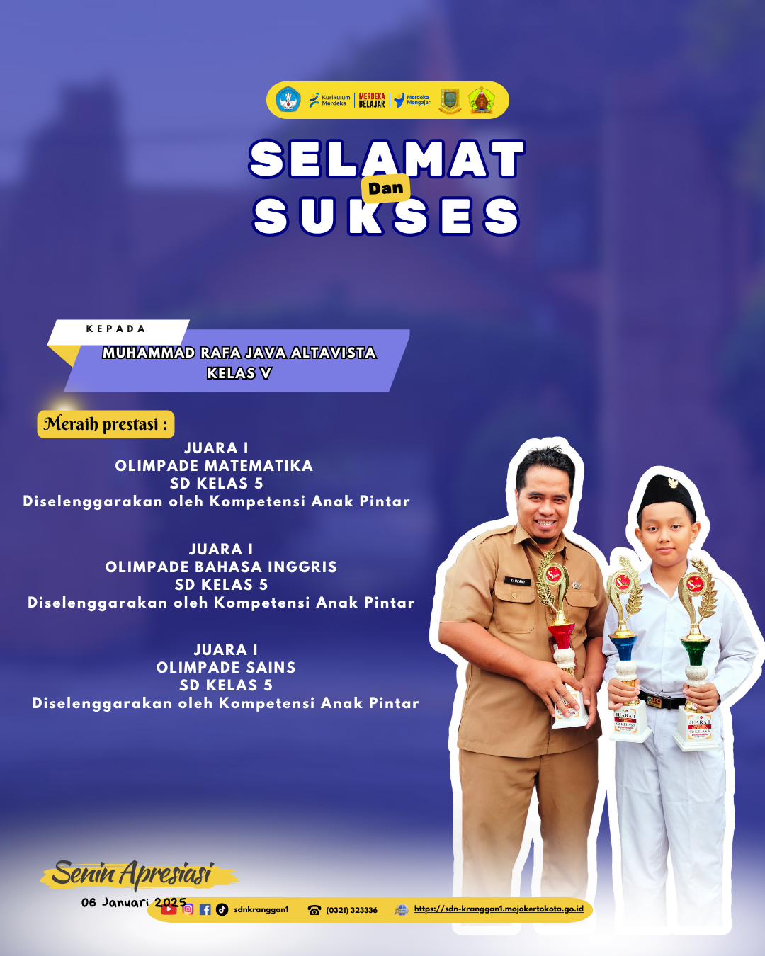 Puji syukur kita panjatkan ke hadirat Allah SWT atas segala rahmat dan karunia-Nya, sehingga SDN Kranggan 1 Kota Mojokerto dapat terus berkembang dan memberikan layanan pendidikan yang unggul dan berkarakter bagi generasi penerus bangsa.